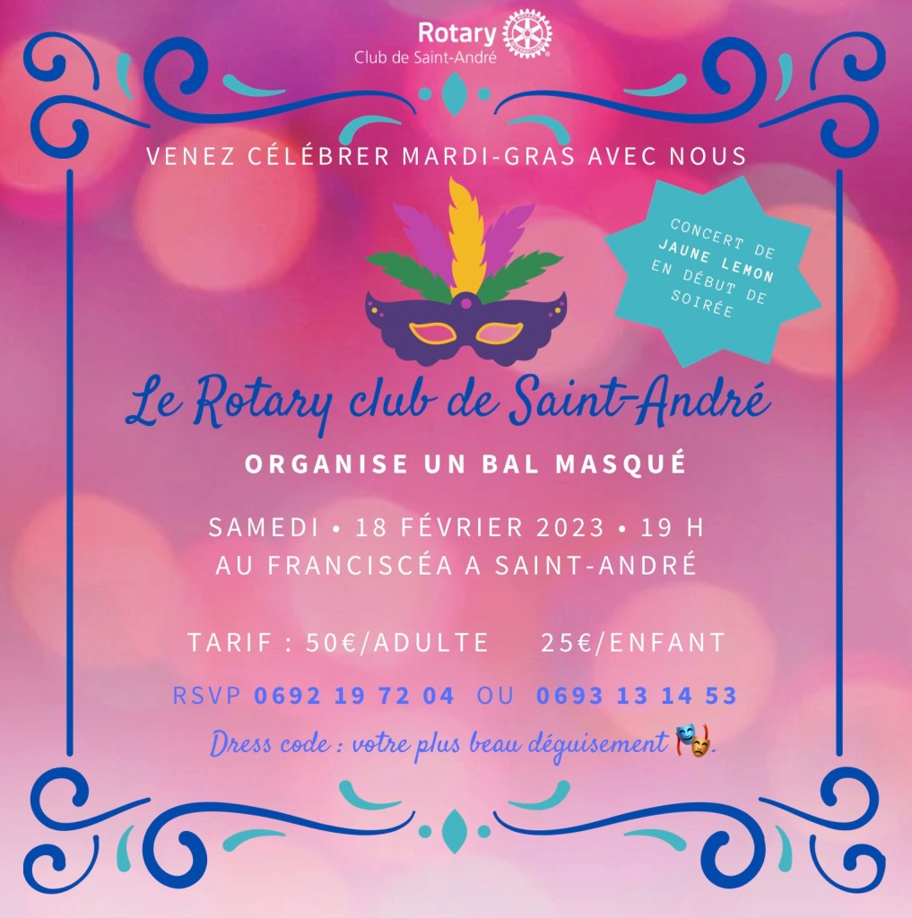 Nous sommes heureux de vous convier Ă notre levĂ©e de fonds le Samedi 18 FĂ©vrier 2023 Ă partir de 19h au FranciscĂ©a Ă Saint-AndrĂ©. Les festivitĂ©s commenceront par un concert du groupe Jaune Lemon suivi dâune soirĂ©e dansante. NâhĂ©sitez pas Ă nous contacter đ